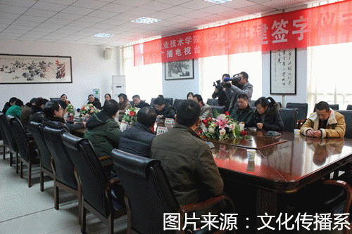 2015年1月9日,四川职业技术学院与遂宁广播电视台院台共建签字仪式在行政楼404顺利举行。莅临本次签字仪式的嘉宾有遂宁广播电视台台长吴军,副台长方志华,台编委会副主任张学林,及各位广播电视台的专家和领导。我院党委书记王金星,党委副书记、院长胡碧玉,副院长何展荣,教务处处长廖策权,出席并接待了来访客人,会议由文化传播系主任杜春海主持。