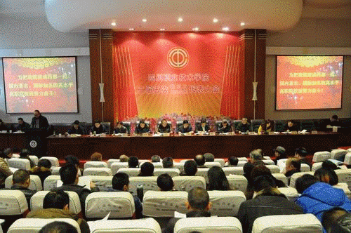 2015年1月16日上午8:30,学院二届五次教职工、工会会员代表大会在学术报告厅隆重召开。学院教职工代表、工会会员代表、特邀代表和列席代表共128人参加了大会。