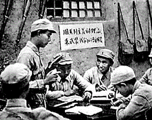 八路军指战员在整风运动中认真学习马列主义理论。资料图片
