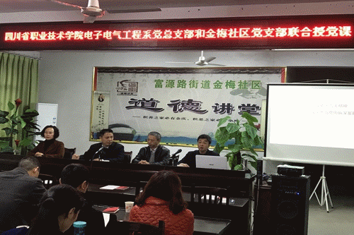 2017年11月19日上午9:00,电子电气工程系党总支、金梅社区党支部同上党课活动在金梅社区党员活动室开展,特邀学院纪委书记张勇作《深入学习贯彻党的十九大精神,坚定不移推进全面从严治党向纵深发展》专题辅导报告,金梅社区党支部、电子电气工程系党总支50余名党员参加学习。