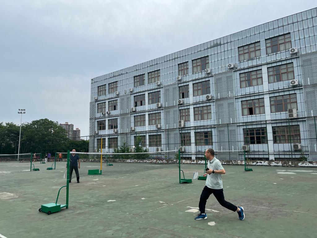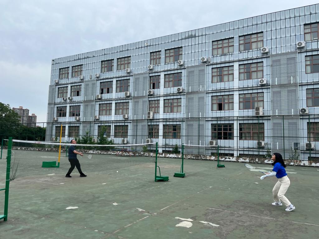 下午5点,在风雨篮球场上,大家抛球、挥臂,白色的羽毛球在场地上空飞快传递,画出一道道优雅的弧线。老师们纷纷展现出卓越的技巧,攻防结合,精彩场面不断。