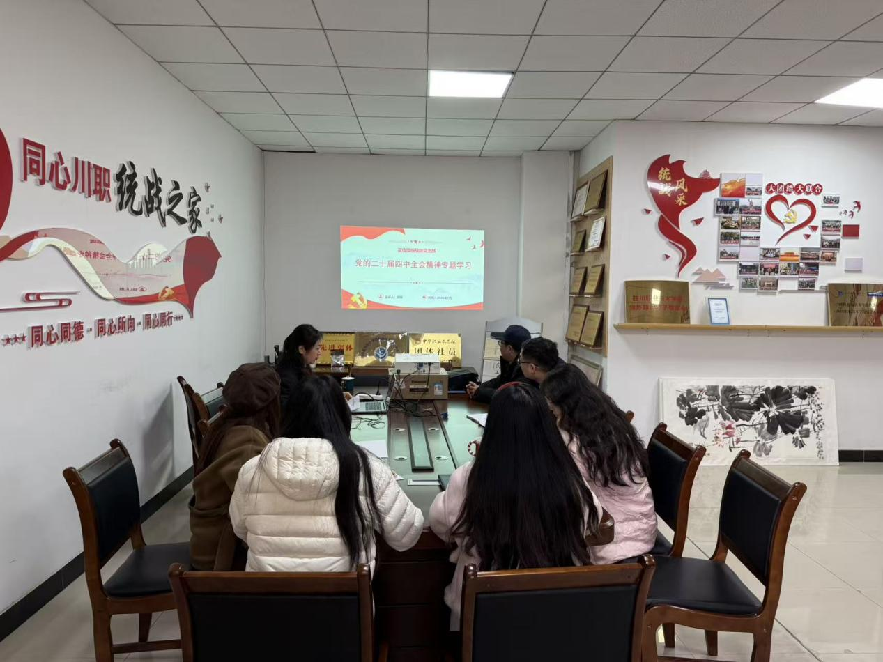 为深入学习贯彻党的二十届四中全会精神,切实把全体党员的思想和行动统一到党中央决策部署上来,凝聚起奋进“十五五”新征程的磅礴力量,1月13日,宣传部统战部党支部书记阎锐同志在行政楼314室为全体党员讲授题为“深悟党的二十届四中全会精神实质,扛起‘十五五’奋进新使命”的专题党课。