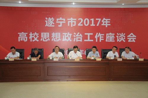 6月20日,遂宁市2017年高校思想政治工作座谈会在我院召开,会议深入学习贯彻全国、全省高校思想政治工作会议精神,部署遂宁市高校思想政治工作。市委常委、宣传部长杨颖,副市长袁冰及我院党委书记张大凯,党委副书记、院长黄远新出席会议。