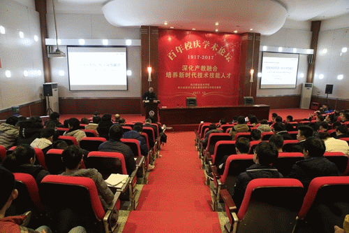 12月21日及22日下午,作为百年校庆系列活动之一,主题为“深化产教融合 培养新时代技术技能人才”的百年校庆学术论坛在我院学术报告厅如期举行。为期两个半日的学术论坛于21日下午3点在遂宁市人民政府副市长罗晖的致辞中拉开帷幕。来自中国工程院、同济大学中德工程学院、北京科技大学、西华师范大学等高校及科研机构的专家学者分别在论坛上做了主题发言,同时,我院的园校合作单位领导及杰出校友也在论坛上进行了发言交流。