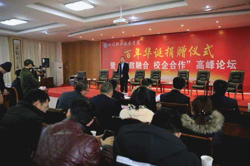 12月21日,学院隆重举行百年华诞捐赠仪式暨“产教融合 校企合作”高峰论坛。学院党委书记张大凯,党委副书记、院长黄远新,副院长何展荣与企业家代表共商合作,共话发展。