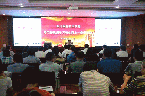 6月14日,学院组织全院中层及以上干部,各党总支、直属党支部委员,思政部教师,学生代表开展学习新思想千万师生同上一堂课活动,深入学习宣传贯彻习近平总书记在北京大学师生座谈会和纪念马克思诞辰200周年大会上重要讲话精神。活动邀请成都航空职业技术学院党委书记杨建国教授作专题报告,并同步网络直播。