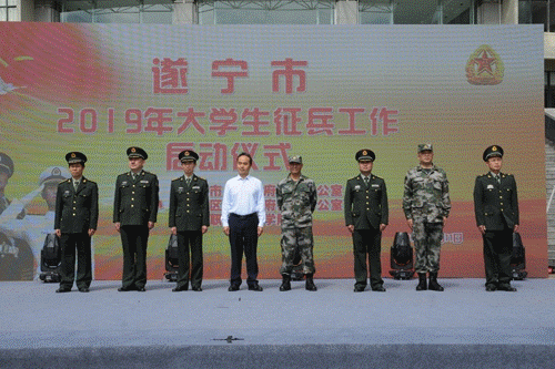 4月12日,遂宁市2019年大学生征兵工作启动仪式在我院举行。遂宁军分区副司令朱新胜大校,遂宁军分区战备建设处处长陈敏上校,船山区人民武装部部长彭海涛中校,船山区人民武装部政委谢超上校和学院党委书记张大凯同志,学院武装部全体成员共同出席了仪式。启动仪式由副院长胥长寿主持。