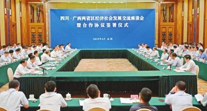 4月25日至26日,广西壮族自治区党政代表团来川考察。26日下午,四川·广西两省区经济社会发展交流座谈会暨合作协议签署仪式在成都举行。