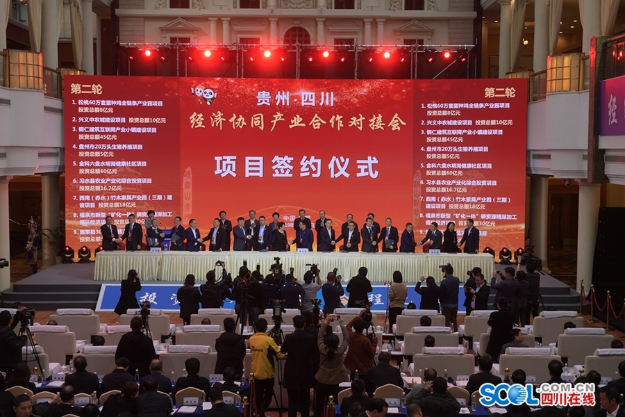 19日上午,贵州·四川“经济协同·产业合作”对接会和项目签约仪式在成都举行。尹力出席并致辞,谌贻琴作招商推介。在川期间,贵州省党政代表团还前往成都交子金融科技中心、天府新区规划厅、四川特驱投资集团、四川铁骑力士实业公司、成都京东方光电科技公司、东方电气集团考察。