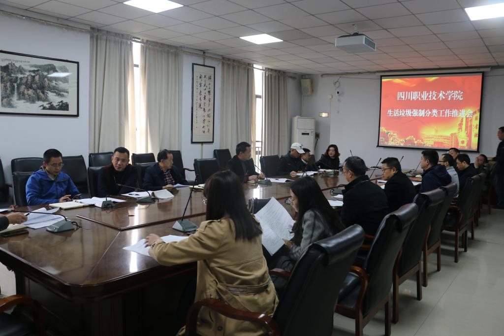 会上,后产处处长江涛首先传达了四川省教育厅转发的四川省人民政府办公厅《关于印发四川省生活垃圾分类和处置工作方案》的通知(川办函〔2019〕69号)、四川省机关事务管理局关于印发《四川省公共机构生活垃圾分类工作评价细则(试行)》的通知(川机管函〔2019〕1339号)两个文件。随后对学院生活垃圾分类工作实施方案的细则作了说明,对下一步工作安排作了汇报。与会人员就学院生活垃圾强制分类工作中遇到的问题进行了交流探讨。