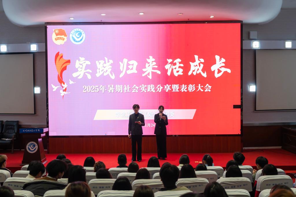11月24日晚,学校在河东校区学术报告厅隆重举行2025年“实践归来话成长”暑期社会实践分享暨表彰大会。学生工作部、团委相关负责同志、各二级学院团总支书记及各学院师生代表200余人参会。