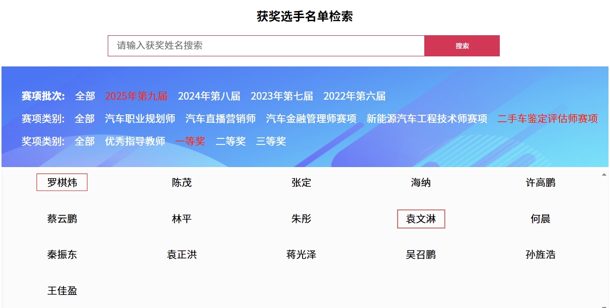 汽车学院汽车技术服务与营销专业学生袁文淋、罗棋炜,参加了“二手车鉴定评估师”赛项。经过平台培训考核、理论竞赛、技能考核和项目方案报告等多个环节的角逐,从来自全国众多竞赛选手中脱颖而出,荣获一等奖,同时凭借他们的比赛成绩能够顺利拿到《二手车鉴定评估师》职业资格证书。