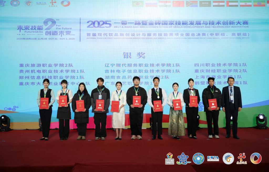 11月3日包头赛区,高职组学生团队在现代饮品融创设计与服务赛项中,以新式茶饮创意设计、标准化操作流程及场景化服务方案,展现“技术+服务”的复合型能力,力克群雄摘得银奖,打响赛事开门红;